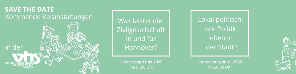 Am 11. September 2025 von 18–21 Uhr in der VHS Hannover diskutieren wir mit Initiativen, Vereinen, Verbänden, Politik und Verwaltung über die Bedeutung zivilgesellschaftlicher Arbeit. Fragen wie „Was kann nur die Zivilgesellschaft?“, „Warum ist sie wichtig für die Demokratie?“ und „Welche Risiken bergen Kürzungen?“ stehen im Mittelpunkt.